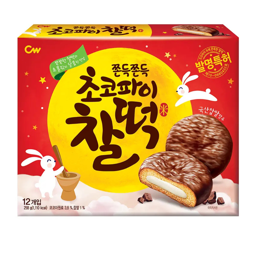 CWFOOD Choco Rice Cake 258g adalah camilan khas Korea berupa kue berlapis cokelat dengan isian rice cake kenyal, mirip versi chewy dari Choco Pie. Cocok untuk teman teh atau kopi.