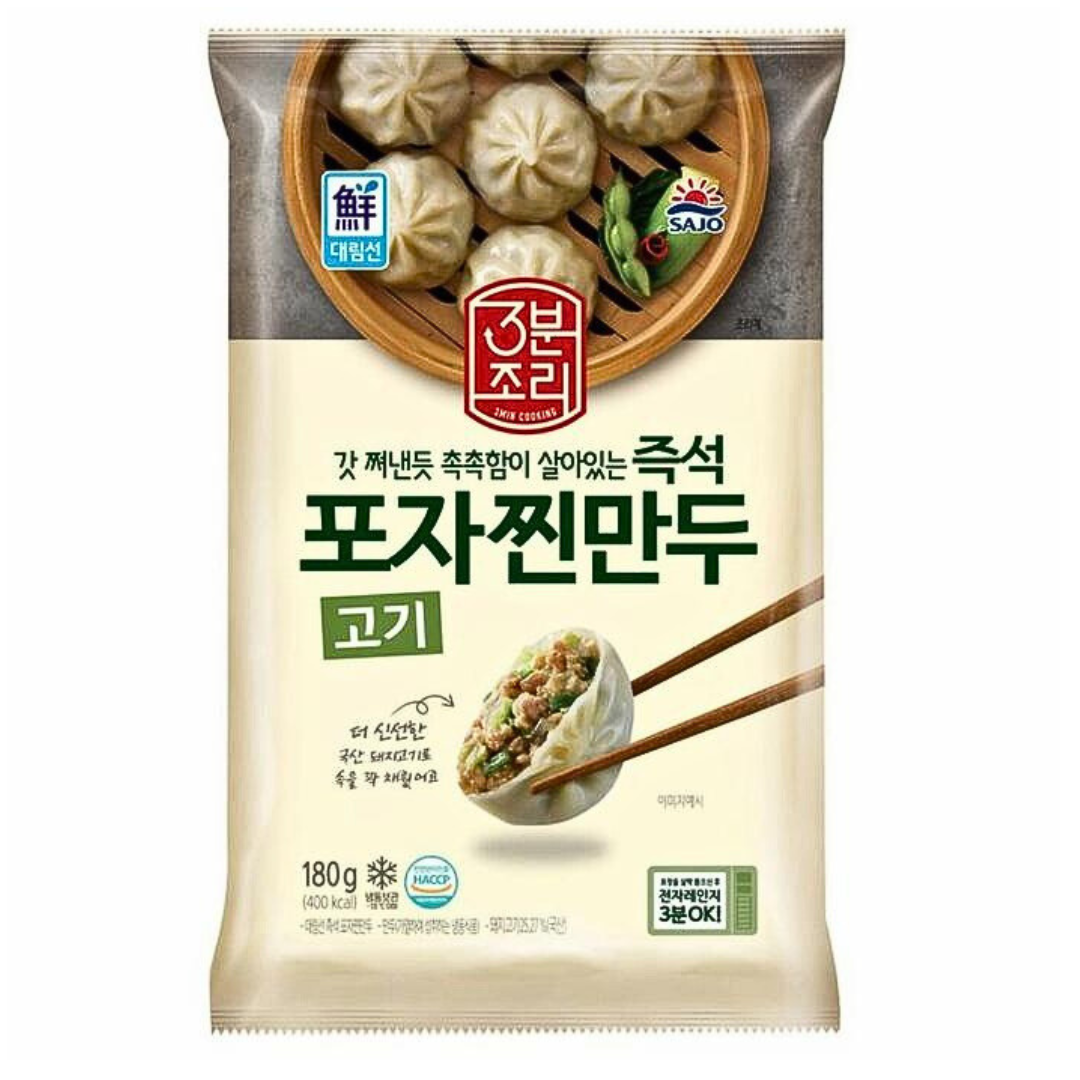 DAERIM Po Jja Jjin Mandu 180g adalah pangsit kukus khas Korea berisi daging babi dan sayuran, dikemas beku dan siap dimasak sebagai lauk atau camilan hangat.