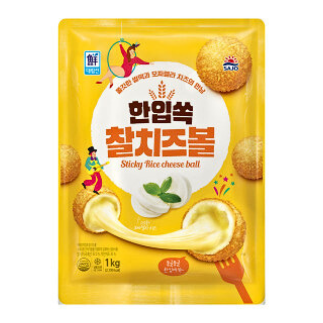 DAERIM Sticky Rice Cheese Ball 1kg adalah camilan beku Korea berbentuk bola-bola ketan isi keju, bertekstur kenyal di luar dan creamy di dalam, cocok untuk digoreng sebagai snack gurih manis.