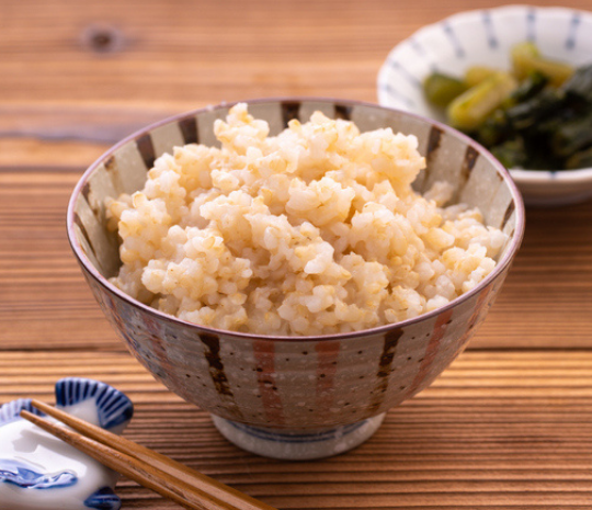 - Bahan utama: Beras merah yang telah dikecambahkan (germinated brown rice), air