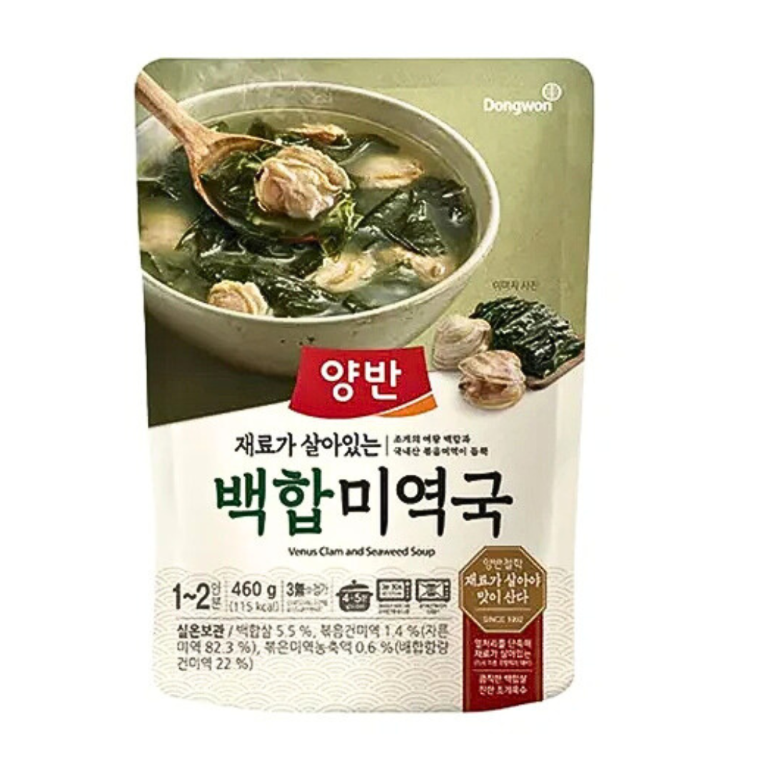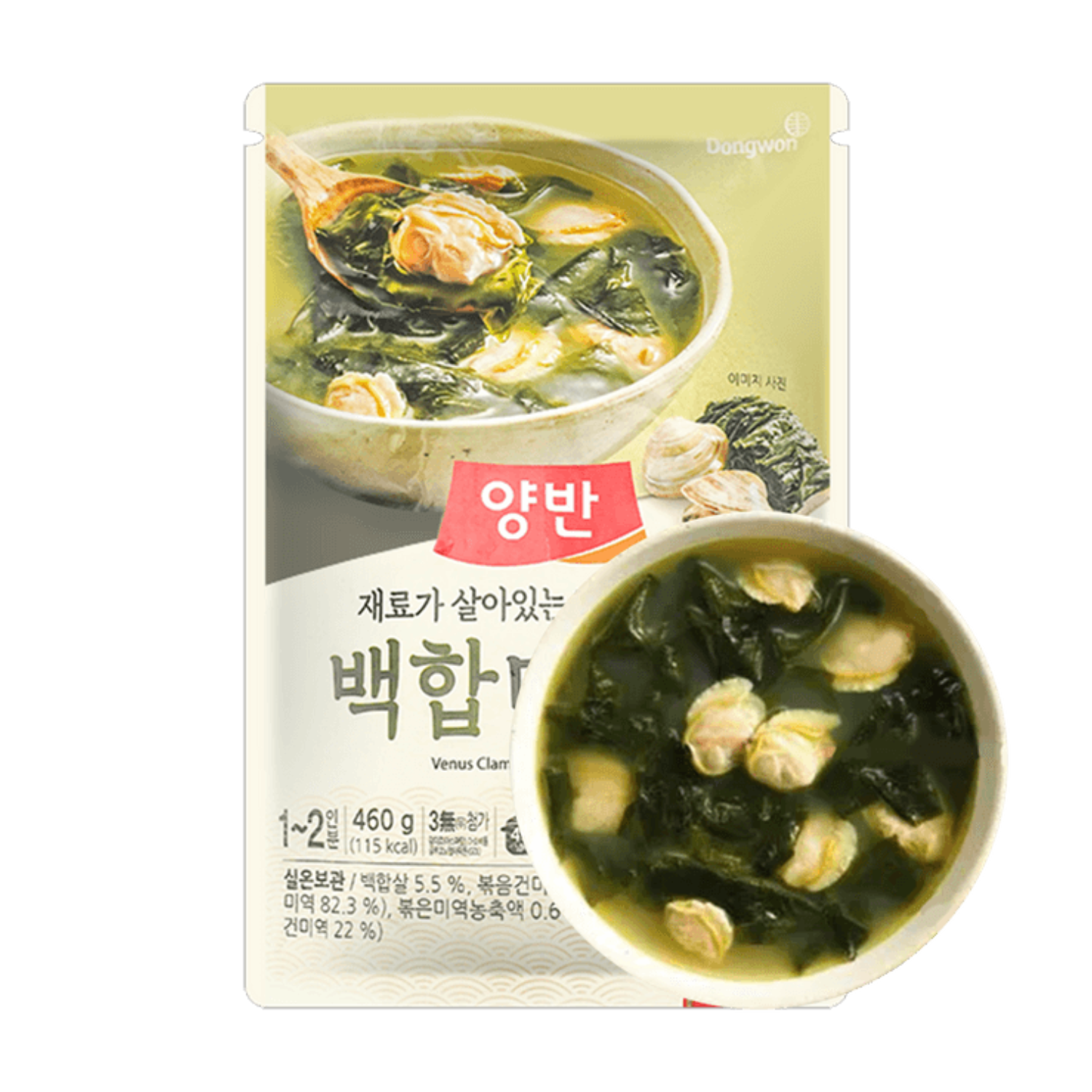 Dongwon Venus Clam and Seaweed Soup 460g adalah sup instan khas Korea berbahan dasar kaldu kerang Venus dan rumput laut, dikemas praktis 460 gram dan siap dipanaskan sebelum disajikan.