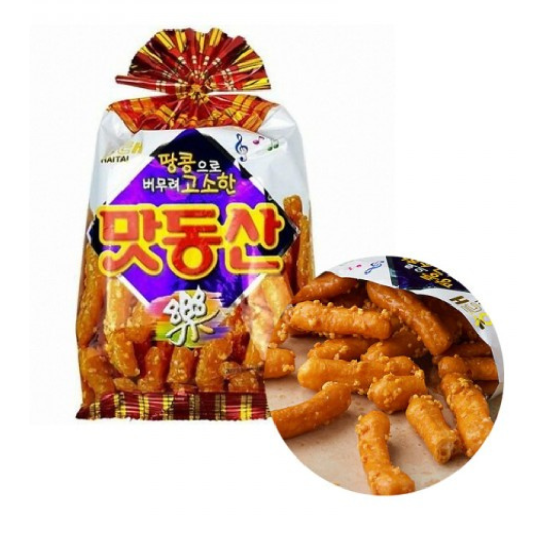 HAITAI Matdongsan 90g adalah camilan khas Korea berupa keripik manis-gurih berbahan dasar tepung dan kacang tanah, dikenal dengan tekstur renyah dan rasa karamel ringan yang bikin nagih.