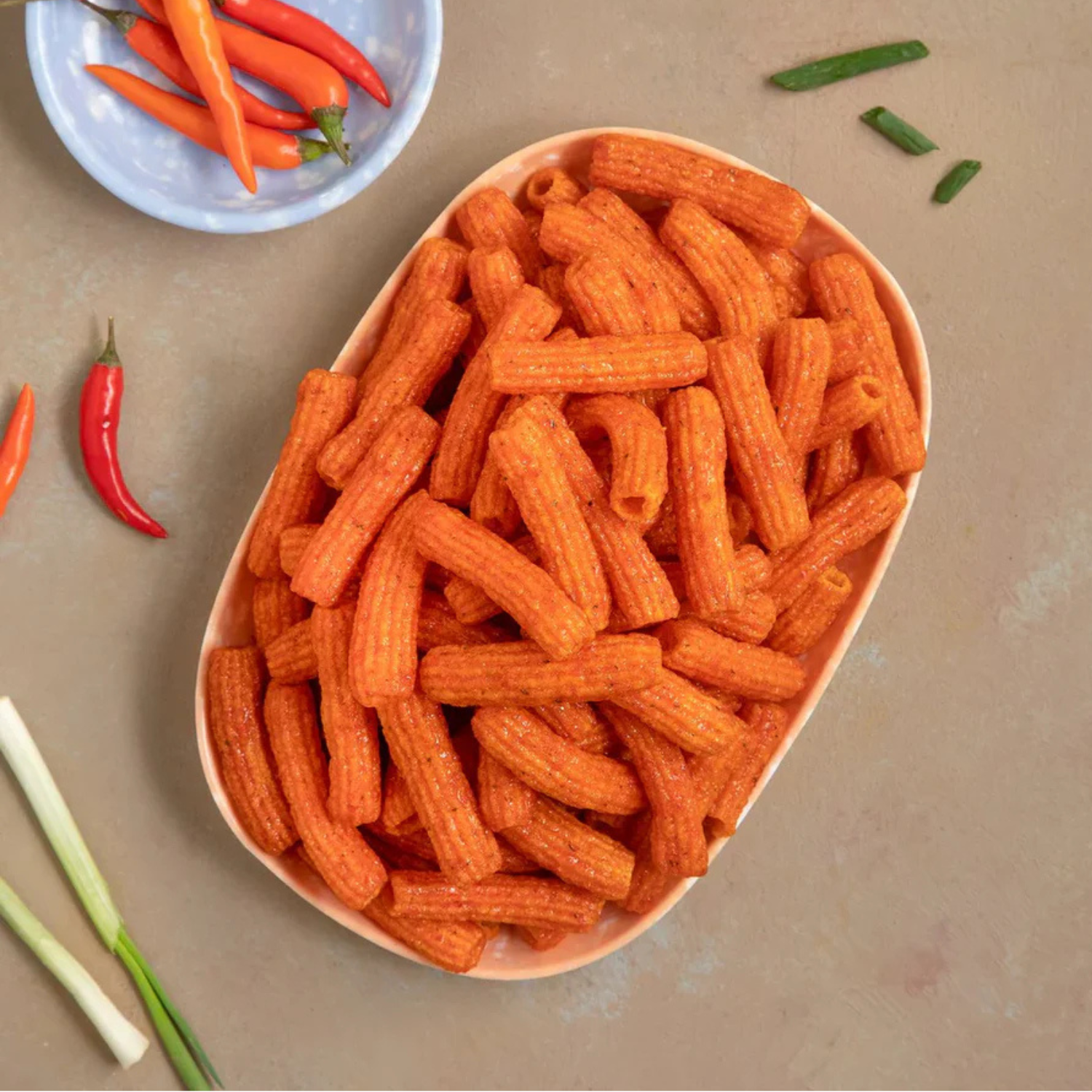 - Tekstur renyah dan ringan, mirip keripik beras atau puff