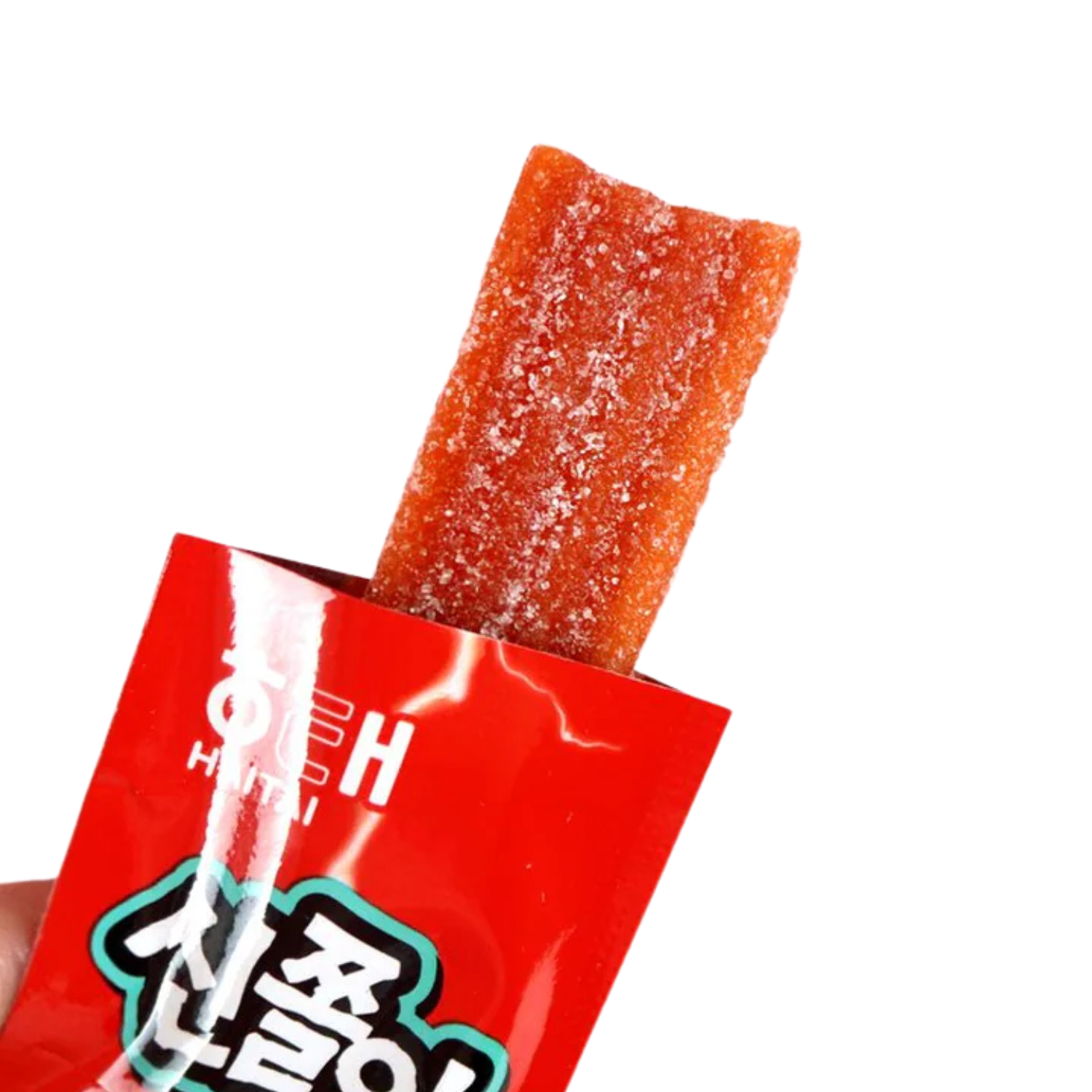 HAITAI Sour Jelly Strawberry 24g adalah permen jeli rasa stroberi asal Korea dengan sensasi asam-manis dan tekstur kenyal, dikemas dalam stik praktis yang cocok sebagai camilan ringan.