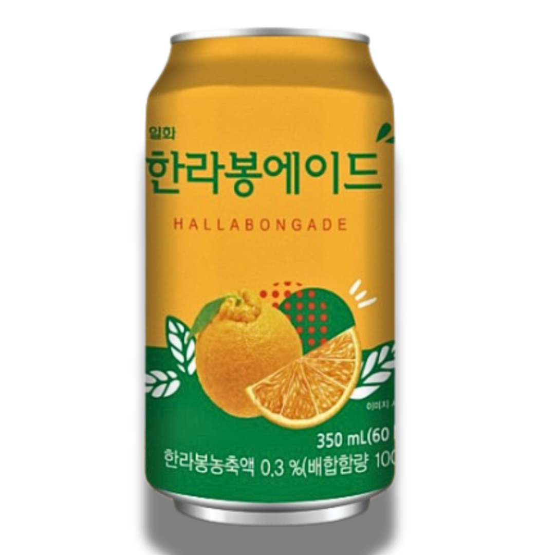 ILHWA Hallabong Ade 350ml adalah minuman soda asal Korea yang mengandung jus jeruk Jeju Hallabong, menawarkan rasa segar, manis, dan sedikit asam dalam kemasan kaleng praktis.