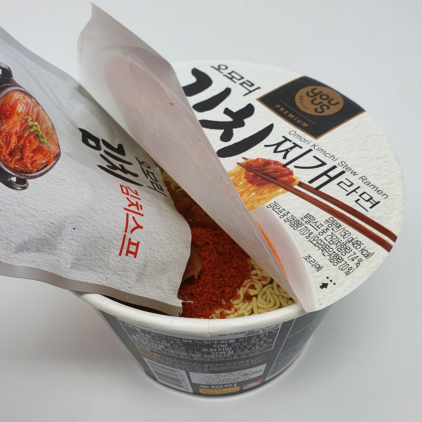 OMORI Kimchi Stew Ramyun Cup 150g adalah mi instan Korea dalam kemasan cup yang menghadirkan rasa pedas dan asam khas kimchi jjigae (sup kimchi), cocok sebagai camilan cepat atau makan siang praktis.