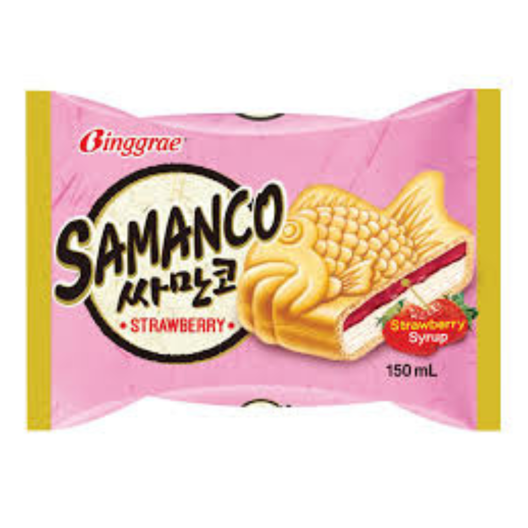 SAMANCO Strawberry 150ml adalah minuman yogurt rasa stroberi dalam kemasan praktis 150ml, berasal dari brand Samanco yang dikenal dengan produk es krim dan minuman bernuansa Korea.