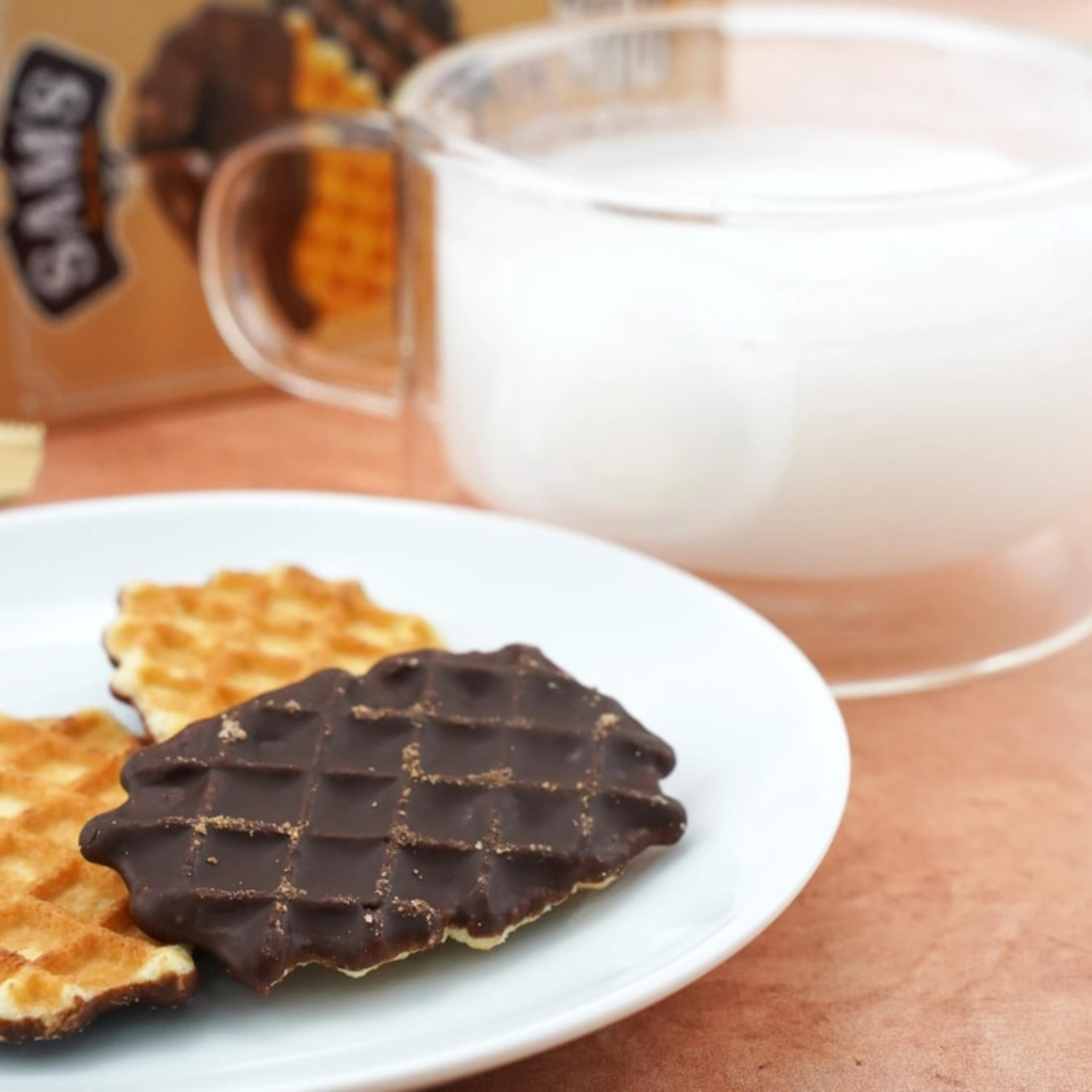 Sam’s Choco Waffle 64g adalah camilan wafel lapis cokelat asal Korea Selatan yang populer karena rasa manisnya yang pas dan tekstur renyahnya.